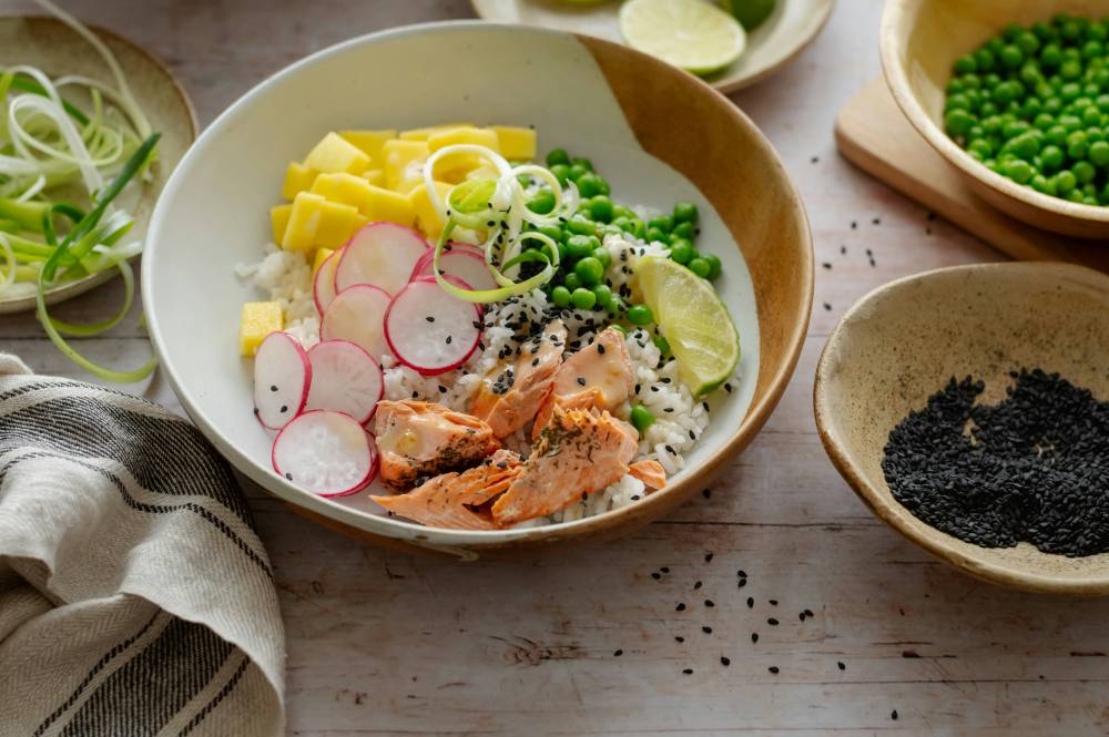 Focus on meals rich in vegetables, fruits, whole grains, lean protein, legumes, nuts, seeds, and healthy fats such as olive oil or avocado. These foods provide fiber, vitamins, minerals, and antioxidants that help regulate hormones and reduce inflammation. Fiber in particular slows digestion and supports gut health. This prevents those sudden blood sugar spikes, helping you stay full longer while preventing overeating.