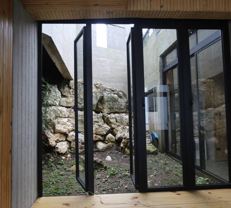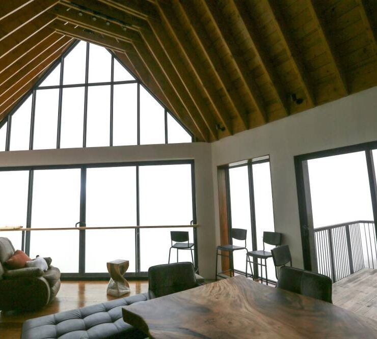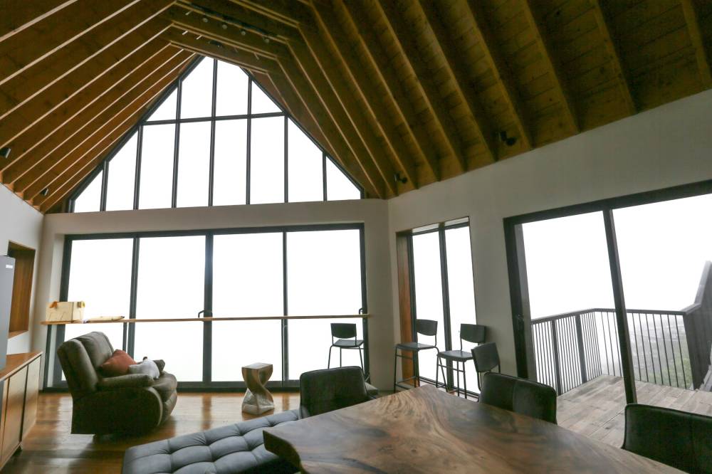 In another strikingly designed home that sits on a cliff and overlooks a couple of small waterfalls, the team retained a giant rock.