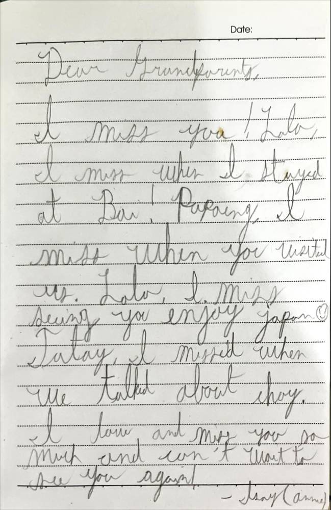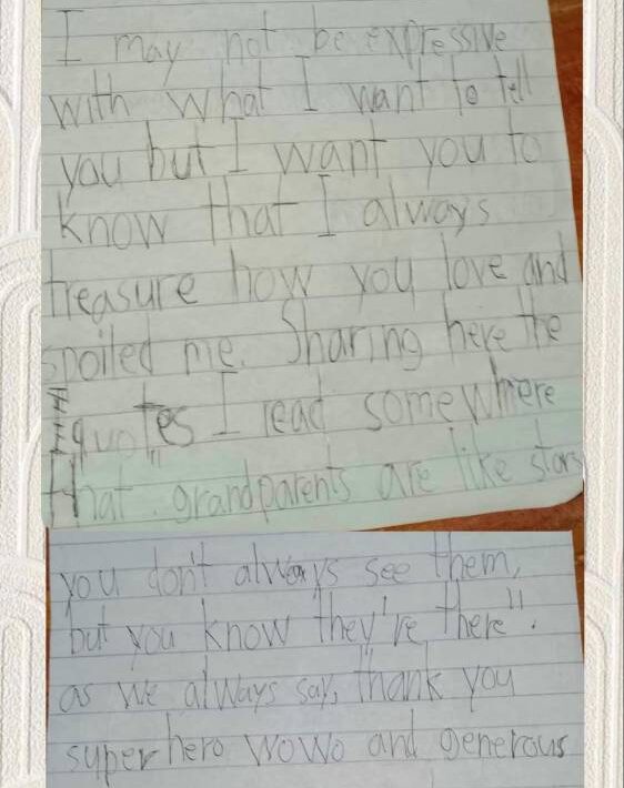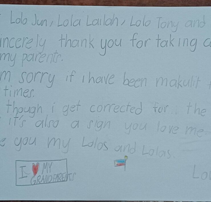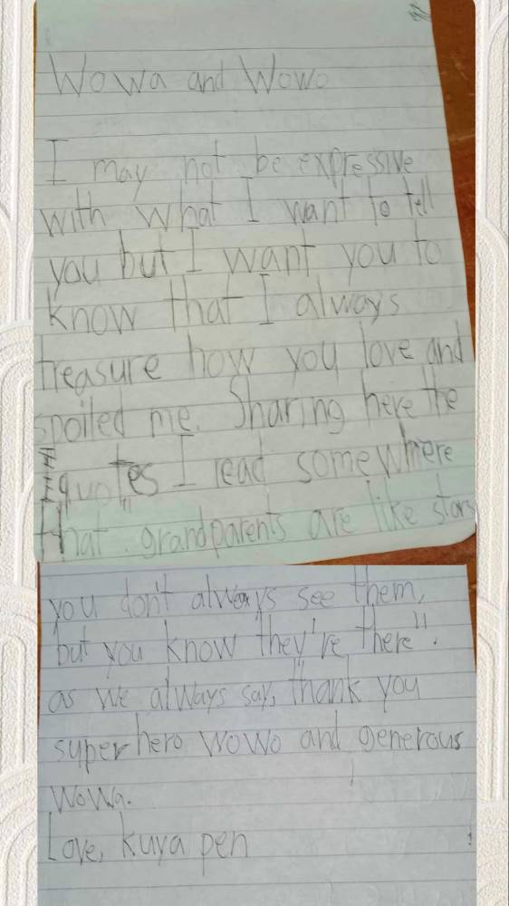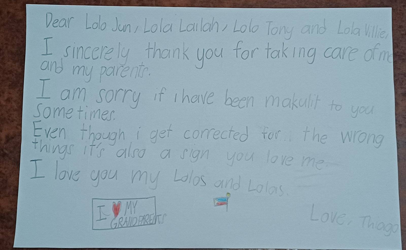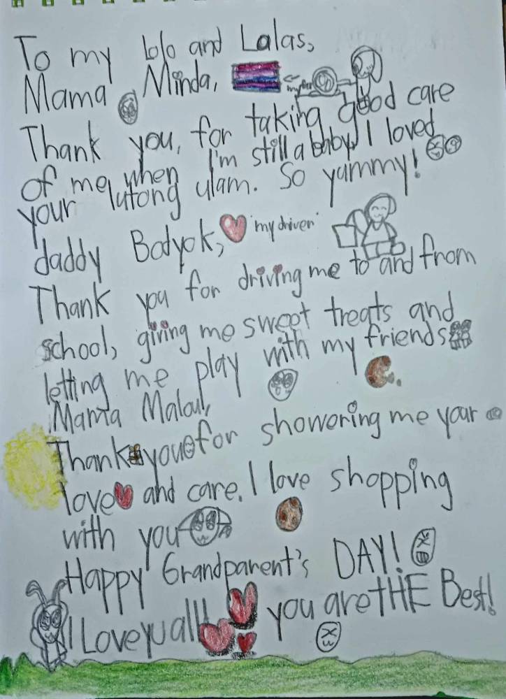 This is a collection of letters that the little ones have penned to express their love, gratitude and fondness for their lolos and lolas.
