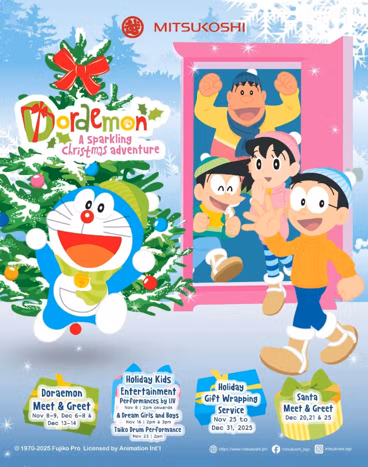 The beloved blue robotic cat has been charming visitors all month, and MITSUKOSHI BGC at the podium level of The Seasons Residences families have one last chance to meet him on Dec. 13 and 14, with sessions at 1:00 p.m., 3:00 p.m., and 5:00 p.m. at the Ground Floor Main Event Space. These final appearances promise a memorable moment for fans eager to capture one more holiday encounter with the iconic character.