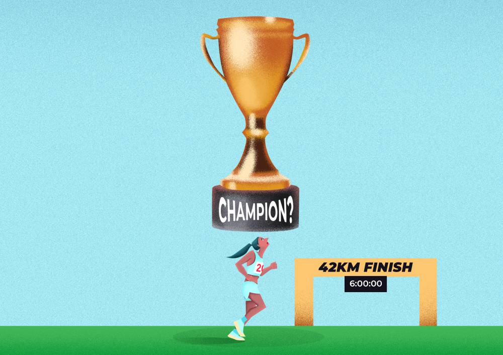 Put simply: The TBR Dream Marathon isn’t a hardcore competitive race the way the world’s major marathons are, so there isn’t any real sense to declare yourself a champion of it aside from stroking your own ego. While the first finisher coming in at the shortest time that day was certainly an accomplishment (no one’s taking that away from him, for sure), TBR clarified that there is no one “champion,” there is no first among equals. Everyone who finished the full distance is a champion for having done so.