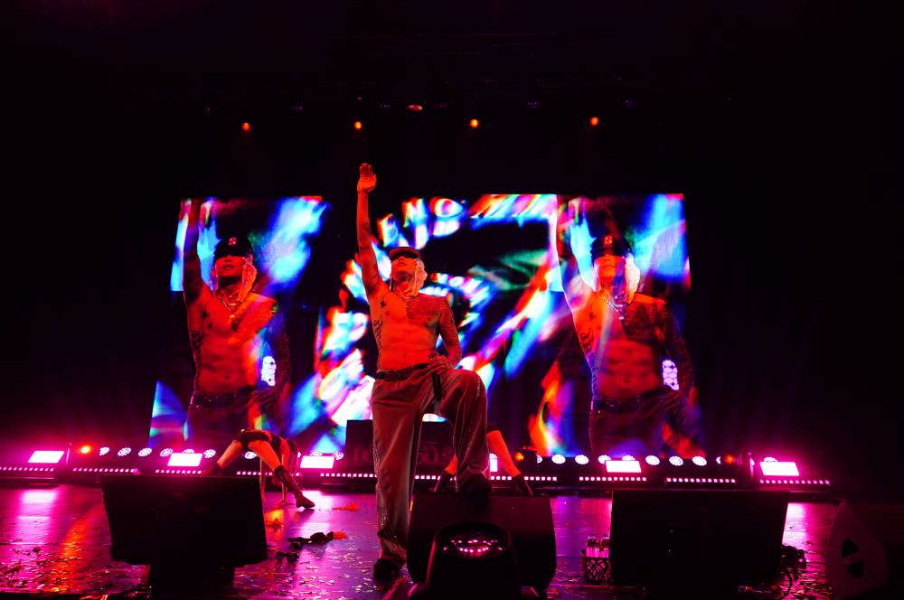 It was a moment so tender, so introspective, you wouldn’t expect to see bras and panties flying to the stage a couple of songs later. But as it turned out, this cheeky little ritual from his fans usually signals the winding down of the show. Now, everyone was letting loose—dancing, screaming, jumping—as Park launched into a flurry of hip thrusts and, of course, body rolls. And as the remaining songs in the setlist dwindled, so did his clothing. By the end of the show, performing “The Purge,” Park waded through the crowd—bare-chested, tattoos in full display—much to the fans’ delight.