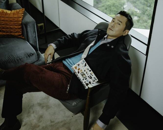 Taiwanese actor Joseph Chang channels this effortlessly cool vibe by pairing an oxford shirt with a vibrant blue vest over burgundy velvet trousers and brown leather Chelsea boots and the Fendi Baguette Soft Trunk bag. The contrasting layers are balanced and tied together by a chic cashmere blouson.