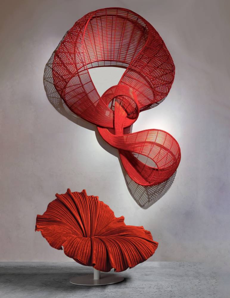 Cobonpue’s pieces continue to be used in film sets and album covers. His Bloom Chair, made of pleated Italian microfiber and assembled to look like petals, was included in a promotional shoot for Netflix’s film “Glass Onion: A Knives Out Mystery.”