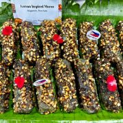 “Shared and Experience Together” is all about getting the same drinks with companions. They are served in a holder that looks like a large book. Salud! is a tequila-based cocktail mixed in with green mango and lime and served in a calavera glass. Dry ice is placed inside for a dramatic book-opening, and it is matched with the luscious smell of smoked green mango.