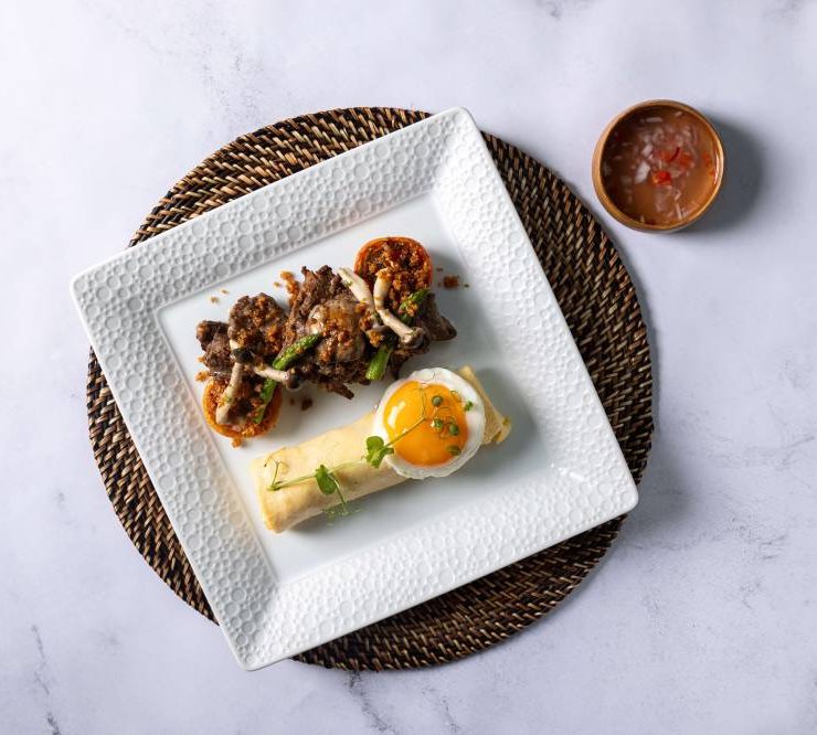 Hotel Okura Manila’s Wagyu Bistek Tagalog is made of thinly sliced premium Japanese wagyu marinated in Yamasa soy sauce and yuzu juice.