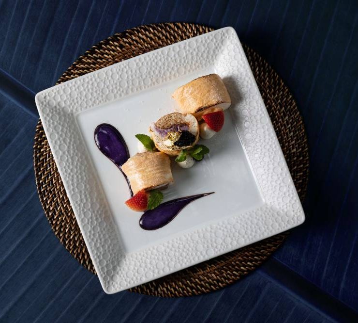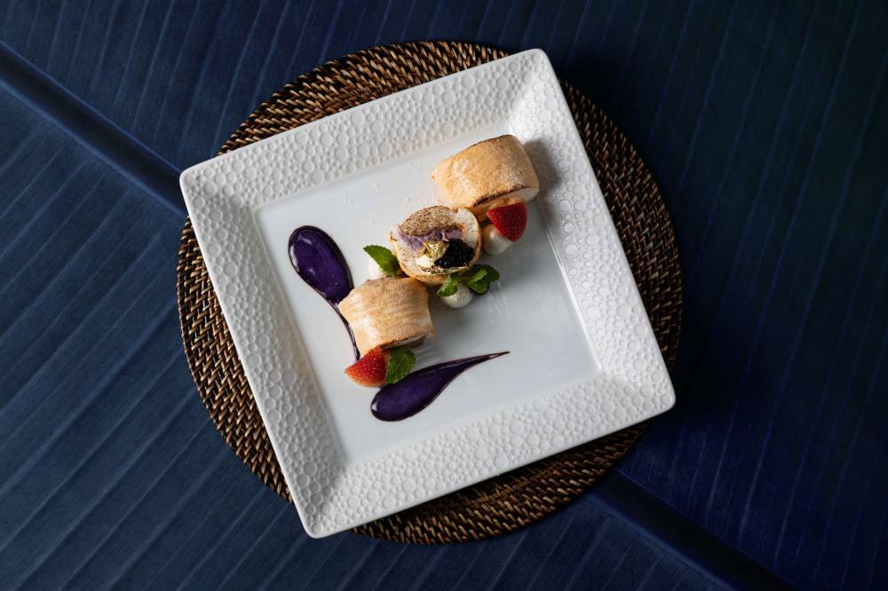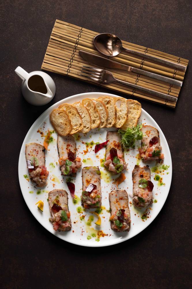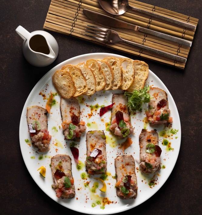 Casa Buenas at Newport Garden Wing offers a version of sinuglaw, a regional dish from the Visayas and Mindanao which balances savory and tangy flavors through grilled pork, tuna ceviche and toyomansi gelée.