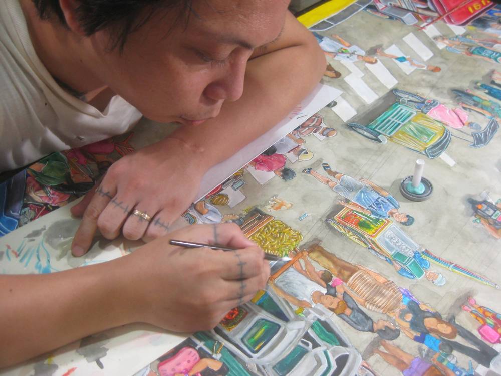 He captures the grit, the chaos and the strange beauty of life in Manila, one painting at a time.