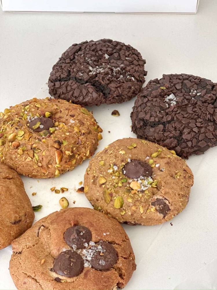 His cookie menu consists of Classic Chocolate Chip, Pistachio Dark Chocolate, Macadamia Chocolate Chip, White Walnut Cranberry, Quadruple Chocolate, and the Croissant Cookie.