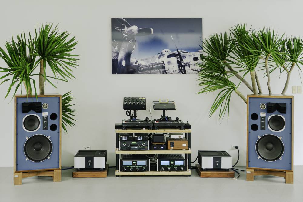 Though Jacob insists he is not a “technocrat in sound,” his pride and joy reveal a meticulous ear: a pair of custom JBL 4344s restored by Kenji Hosoi of Kenrick Sound Japan, paired with McIntosh and Mark Levinson amplifiers and tricked-out Technics SL 1210 MK5 turntables. His Manila system is nothing short of a cathedral. The airy, light-filled space of his home is punctuated by sculpture-like yuccas and a cozy leather sofa. It creates an atmosphere that is at once cool and immersive—a perfect sanctuary for deep listening.