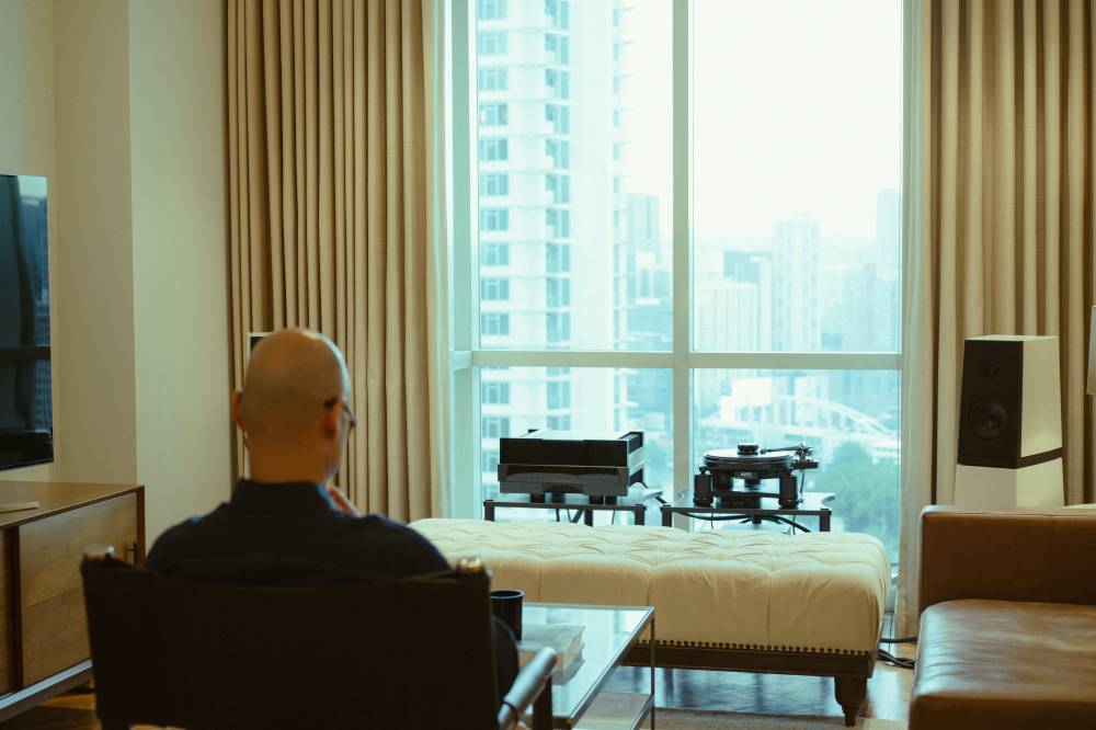 His advice for guests is simple: “Close your eyes. Be silent. Appreciate what the host has built. Never criticize someone’s system—it’s subjective, and always evolving. And as a courtesy, let the host cue the music first.”