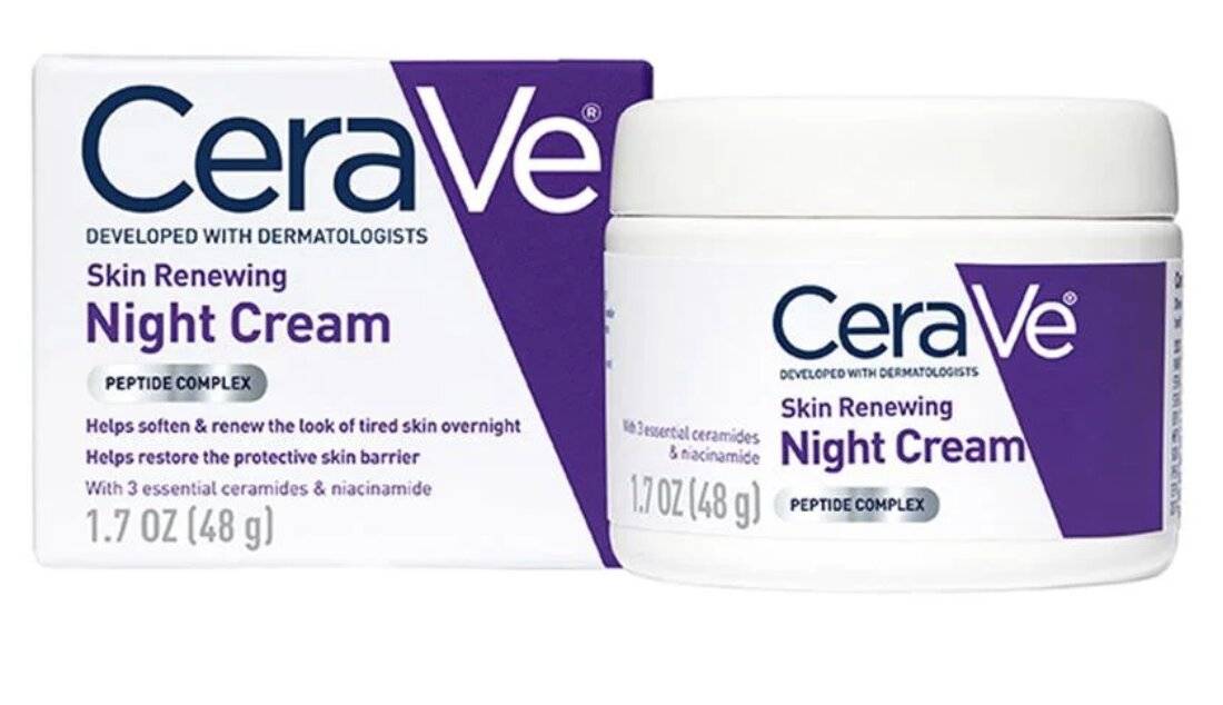 CeraVe Skin Renewing Night Cream reflects a more foundational approach to overnight care, centered on strengthening the skin barrier. A long-time favorite among dermatologists, the formula combines a complex of biomimetic peptides, hyaluronic acid, and three essential ceramides to support repair while maintaining hydration levels throughout the night.