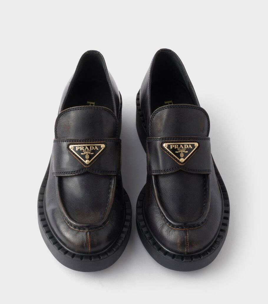 There is something effortlessly cool about a chunky lug-sole silhouette. It shifts the mood away from the usual preppy association and into something more fashion-forward. And the Prada Chocolate loafer in antiqued leather captures that balance perfectly, redefining what a black loafer can look like.