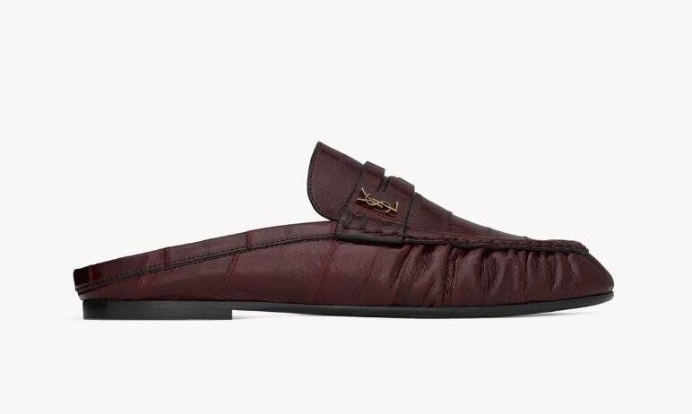 The Le Loafer mules from Saint Laurent take the traditional loafer and strip it back. With the heel left open, the silhouette becomes more of a slide than a structured shoe. It feels easier, less formal, and more relaxed from the start.