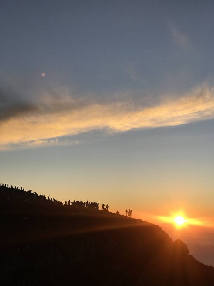 Around 5 a.m., one of Mother Nature’s wonders unfolded in front of our eyes. Almost everyone became quiet as the golden orb appeared on the horizon, shattering the darkness all around and revealing the landscape that surrounded Fujisan. I wasn’t sure whether we would witness a sunrise given the previous day’s weather, but we were lucky. It was an experience meant for the books.