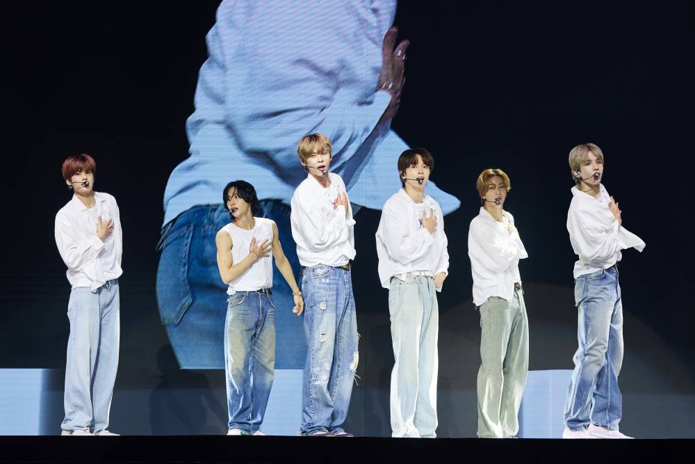 Shotaro, Eunseok, Sungchan, Wonbin, Sohee and Anton catwalked full of confidence and swagger. They opened with the synth-heavy “Siren” that reflected the dystopian imagery onstage. The song was heady and heart-stopping.