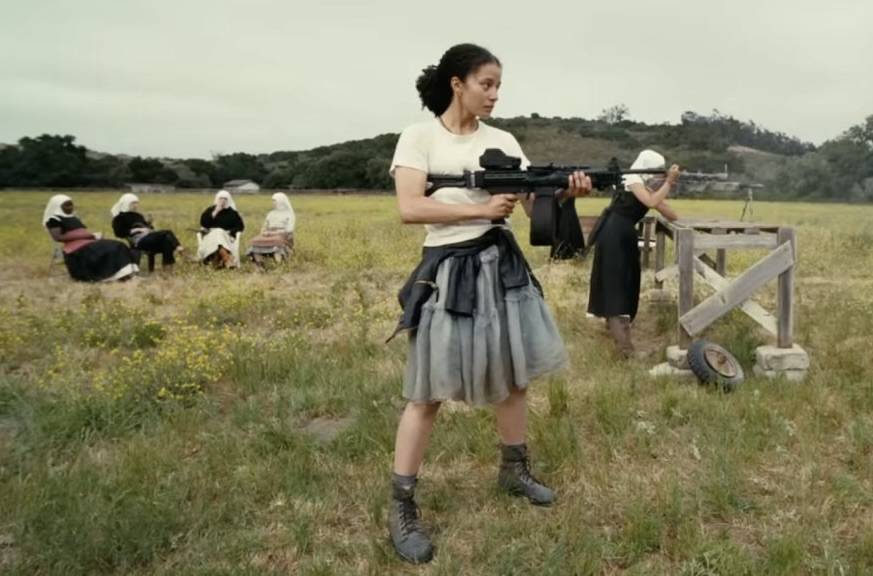 If Lockjaw feels exaggerated, it’s only because reality has caught up. The film’s depiction of violent military counterinsurgency that spills casually into civilian life feels unsettlingly plausible, and of course, brings to mind the senseless raids of the US’s ICE (Immigration and Customs Enforcement). Scenes feel familiar with overexaggerated military men, waving around their guns, and raging in full gear. They carry around battering rams, which seem to be the favorite tool of ICE in their raids.
