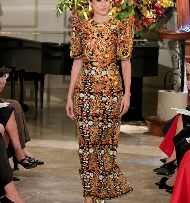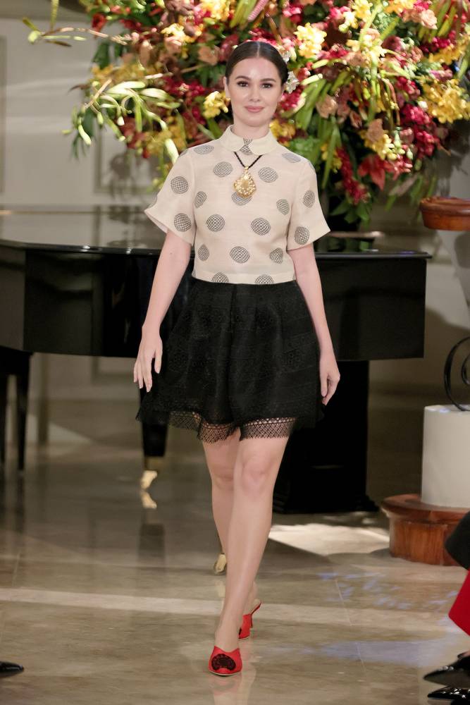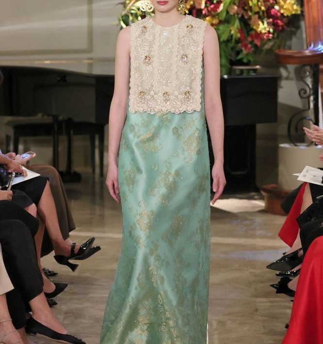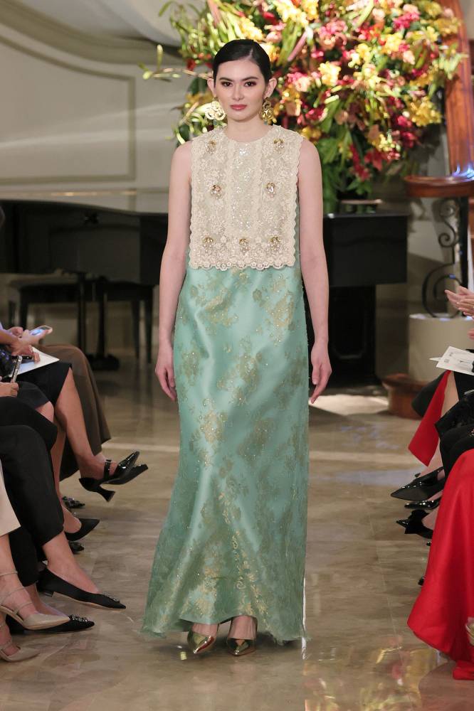 For those who want the shine without being too loud, there were the handwoven silk gown from India adorned with dangling pearls and the Italian brocade skirt complemented the fully beaded piña calado top.