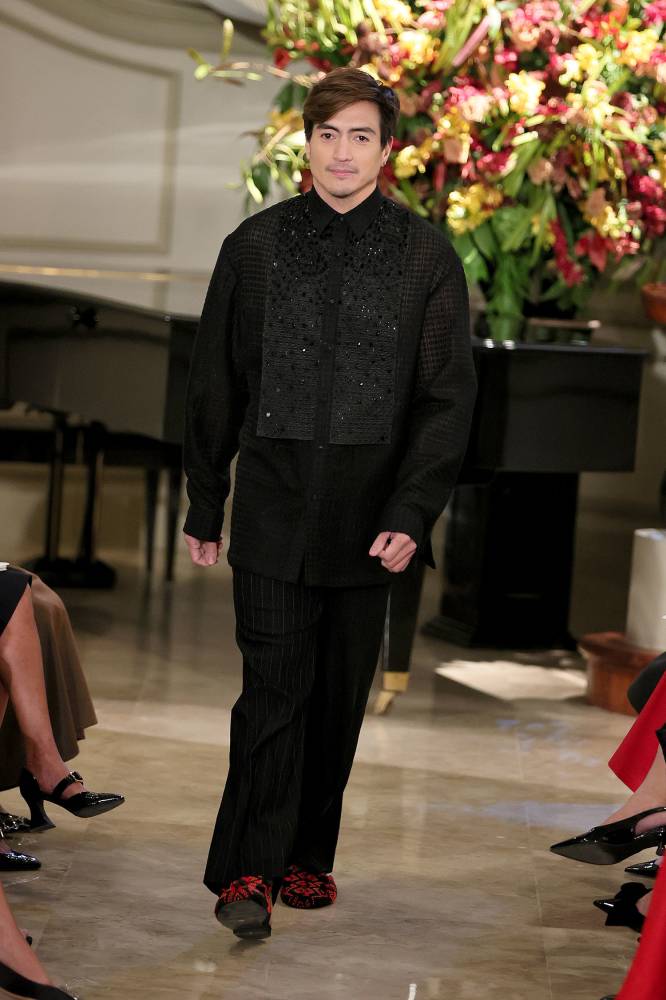 The designer pointed out that all the 73 styles in his collection were matched with customized footwear—Zarah Juan and Marikina shoemakers for the men and Doreen Odvina for the women.