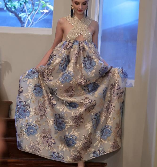 Cabral began as an assistant to the late celebrity makeup artist and designer Fanny Serrano and to couturier Aureo Alonzo. Under the tutelage of Joe Salazar, he picked up his mentor’s style—the use of soft luxurious lining to make gowns look voluminous but light, dainty embroidery and layering.