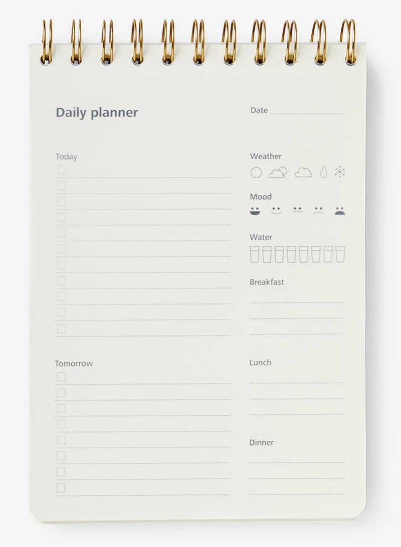 Keep this daily planner pad on your desk and keep track of your to-do lists, the weather, your mood, your meals, even your water intake.