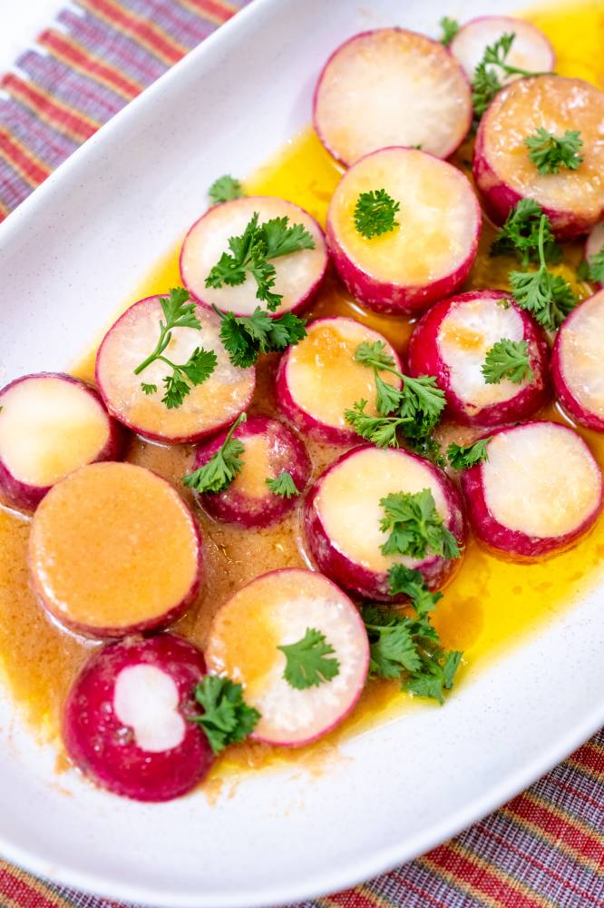 Pickled radish stimulates stomach acid. That’s why it’s served with lechon, fried fish, and grilled meat. Fermented or pickled radish also supports gut bacteria. It teaches your microbiome how to handle rich food. This is ancient probiotic wisdom, hidden inside everyday Filipino meals. Meanwhile, in French cuisine, radish paired with butter and salt makes for a perfect contrast to sharp tastes and fatty flavors. It also lessens the peppery taste.