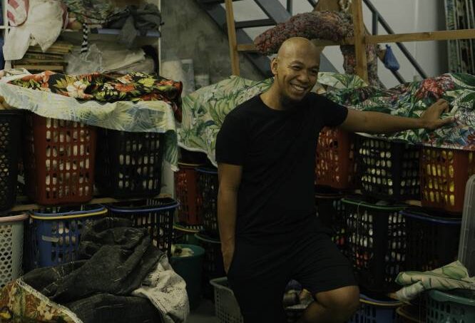 Born to a seamstress mother and a father who worked both as a tricycle driver and a baker at their neighborhood panaderya, Napay’s relationship with thread began long before he called himself an artist. His childhood memories are marked by the cadence of sewing machines, the kaleidoscopic hues of dyed katsa pajamas, and the resourcefulness of a mother who stitched affection into every garment.