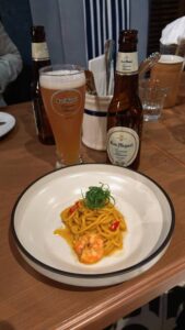 The Cerveza Blanca, a Belgian-style wheat ale brewed with citrus, coriander, and spices, had a distinct cloudy, golden orange glow that matched the hue of the Pasta Aligue it was served with. At first sip, the refreshingly fruity Blanca will have you wondering if you’re drinking beer or juice (read: traydor). And with a whiff of mint, each swig of this summery beer unwittingly doubled as a palate cleanser after mouthfuls of rich noodles slathered with crab fat.