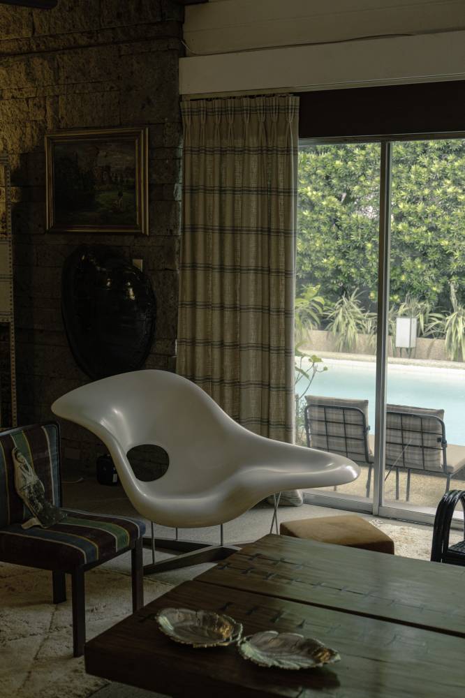 Every corner of Ocampo’s home, from the adobe textures, the mother-of-pearl inlays, and the vintage chairs, to new pieces of both artists and his own creations, creates a conversation between past and present, nostalgia without sentimentality, craft without pretension.
