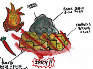 “He and the staff were already getting bored preparing the same food daily so he really was excited for the new menu,” Sison said. In fact, the chef even illustrated how he imagined the dishes would look like once plated—borrowing his child’s markers and sketching and labeling each dish.