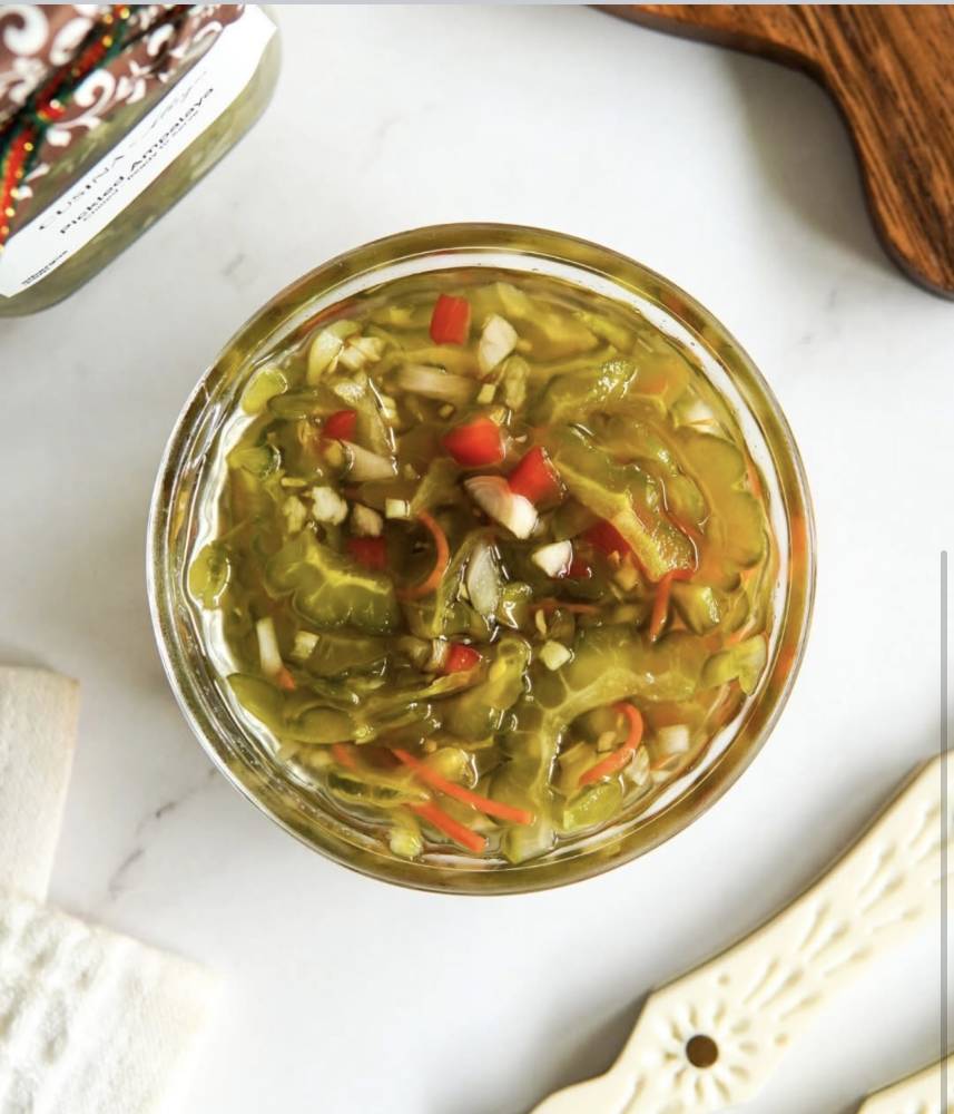 3. Transfer to a serving dish and serve with pickled mustasa on the side.