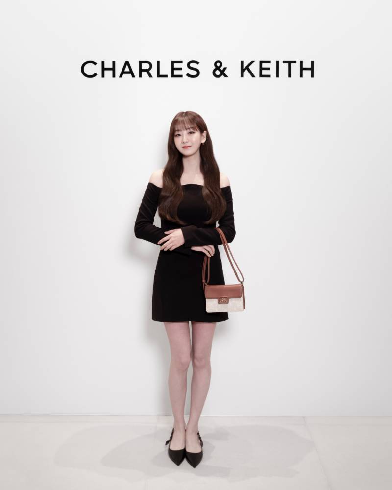 A sleek black car pulled up, and on its sides were the words “Charles & Keith” in stark white. The car door slid open and out stepped Korean star Cho Yi-hyun (“All of Us Are Dead” and “Hospital Playlist”). Cho, fresh from attending Milan Fashion Week, was wearing a black off-shoulder long-sleeved mini dress which she paired with black leather ruched-strap slingback pumps and the cognac leather and canvas two-tone boxy bag, both from Charles & Keith’s new L’initial collection. Cameras flashed and followed Cho as she made her way into the store.