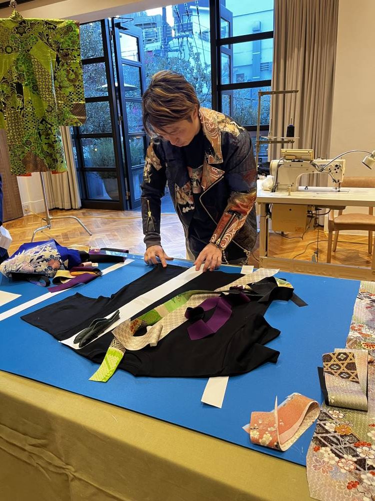 Everyone enjoyed trying to figure out their color and design combinations, with the more daring of the lot even cutting their own fabric strips. Sato was there with his team, expertly cutting the shirts and sewing them back together with the kimono pieces and Charles & Keith fabric, creating unique shirts for each workshop participant.