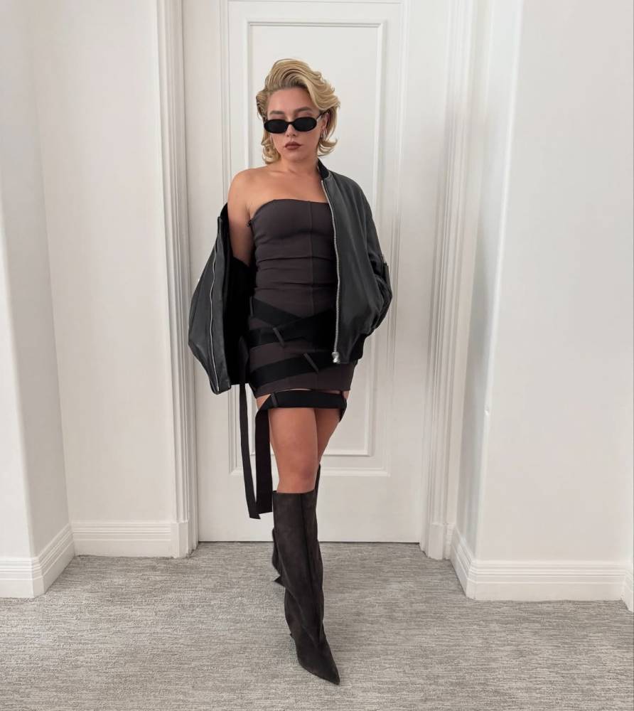 It’s a statement haircut, but one that speaks through proportion rather than volume or drama. Every layer is placed to keep the cut sharp without letting it turn severe, allowing the haircut to feel intentional rather than confrontational. On Florence Pugh, that control shows in how cropped hair still carries warmth and expression.