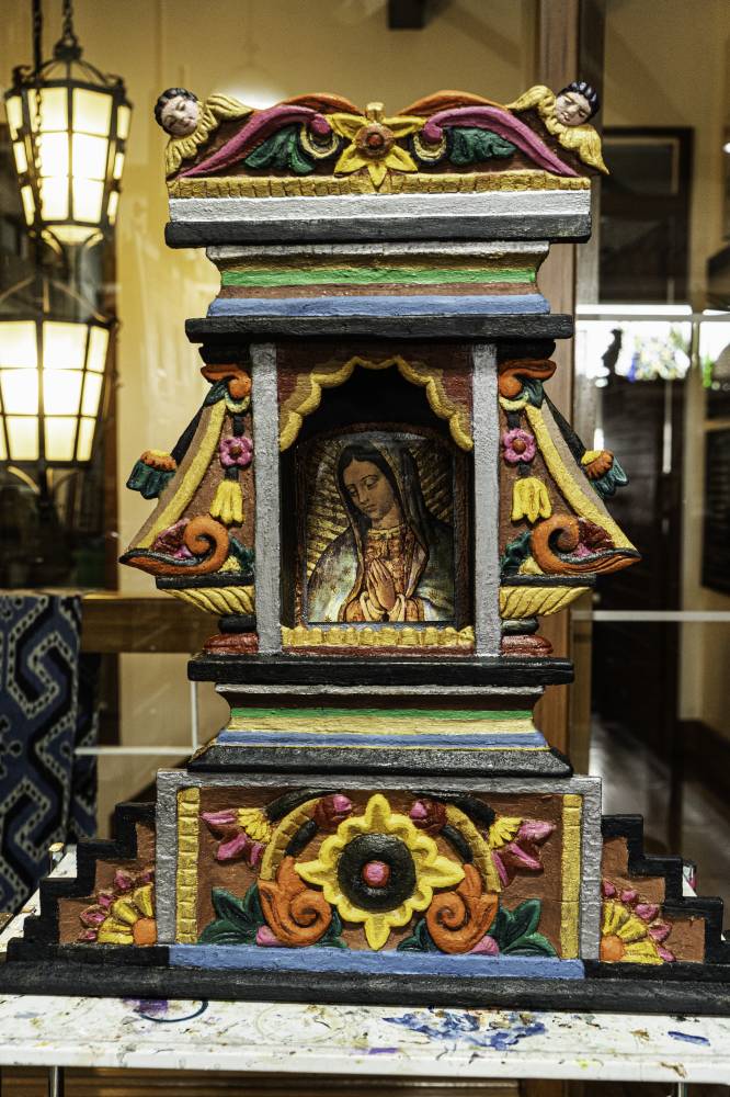 Her studio, strewn with articles of inspiration yet neatly organized with tools in place, reflects Zaballero’s fruitful five-decade career. “My whole life is in here already, where I can work alone in peace,” she states.