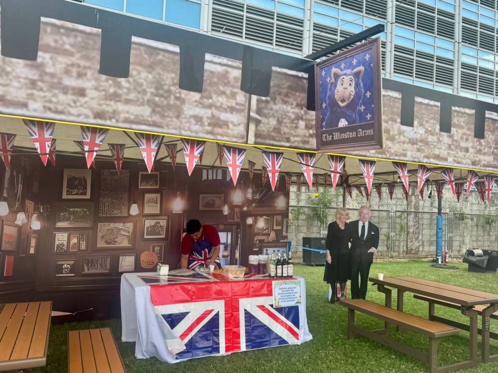 Thankfully, we found The George Catering by chef Marc Licaros of Gorio’s Restaurant. Marc worked with our team to produce the best of British food. The result? Lines for food all night long from those who couldn’t get enough of it. Our menu featured simple food: cottage pie made with beef (shepherd’s pie is made with lamb), apple crumble with custard, Scotch eggs, and roast beef. While these dishes seem commonplace, they are more difficult to make outstanding.