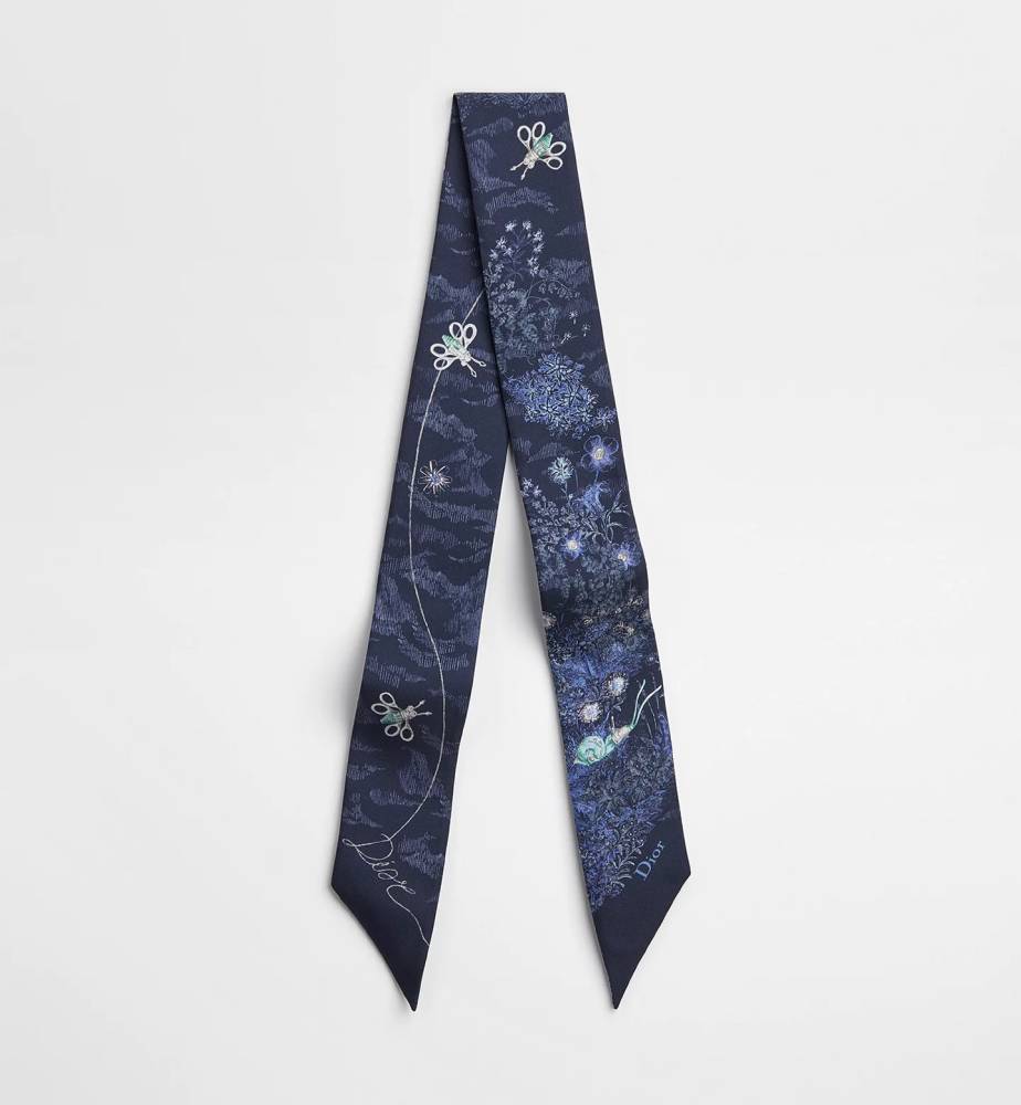 Even similar silhouettes—like the Mitzah from Dior—demonstrate how scarves have evolved from accessory to styling tool. Often knotted onto handbag handles or wrapped tightly at the collarbone, they operate less as statement pieces and more as subtle punctuation marks.
