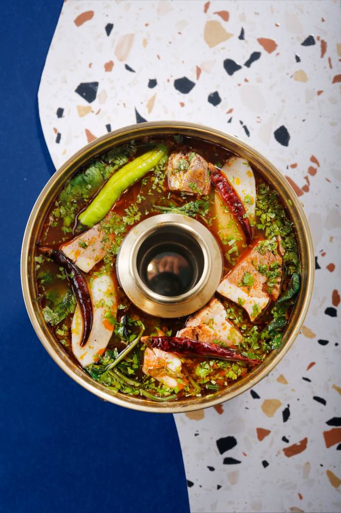 Elsewhere on the menu, Chan brings a succession of regional flair into the mix, which functions as the backbone of Upside Down’s culinary panache. His homemade shrimp okoy dubbed Shokoy is crisp and addictive, especially when it kisses the langka kurat dip; there’s also dinakdakan from Ilocos and a spicy mala sinigang—where the sour tamarind and Sichuan flavor profile simmer in a steamboat—that could very well be The Split’s main marketing machine.