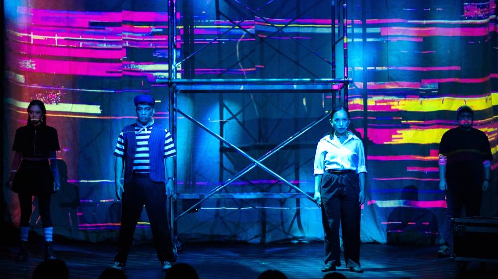 After the intermission, “Children of the Algo” brings us into the virtual world of content creators. Four actors—Otep Madriaga, Nyla Festejo, Frances Marie Akol, and James Pe Lim—play social media influencers as they post videos and livestream their daily lives and struggles.