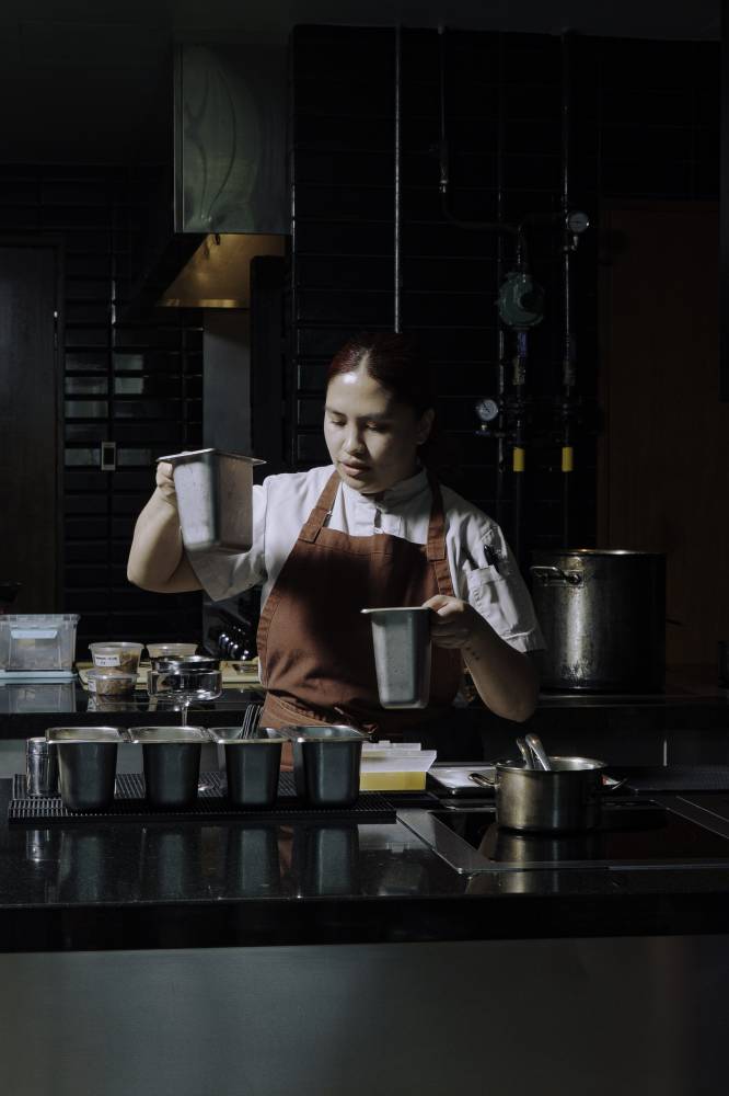 Respite, however, doesn’t come as often to Singson-Javier in the Hapag and Ayà kitchen as it does at home. But it’s a reality she understands, especially now after both restaurants’ Michelin Star and Selected recognitions. “There’s no pressure on cost or timing, and I can experiment freely,” she says. “On the other hand, at Hapag, everything is more structured and time-sensitive. I have to manage prep schedules, oversee my team, and ensure every detail is perfect for service.”