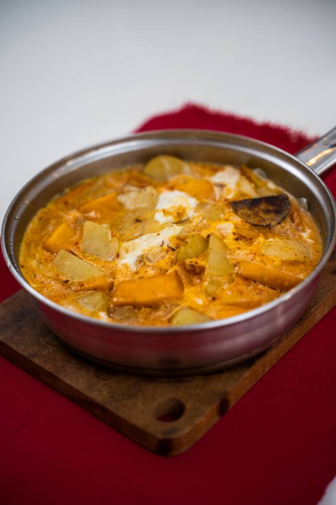 I have recreated this dish to suit the Philippines. Kalabasa, abundant in all seasons, is packed with vitamins and minerals and is generally more affordable compared to potatoes. This tortilla is made with kalabasa, potatoes, and onions. I’ve created this dish in designer kitchens and covered courts, and each time the results are consistently delicious.
