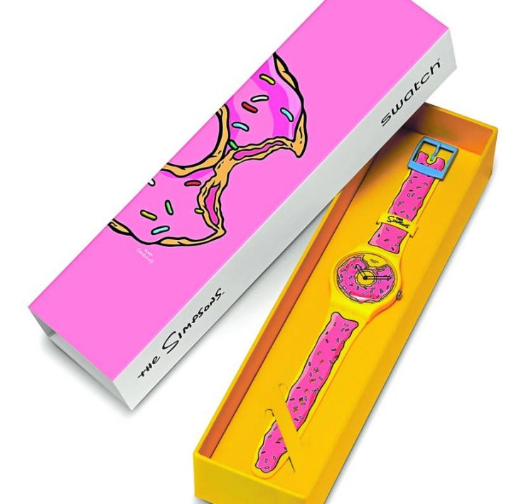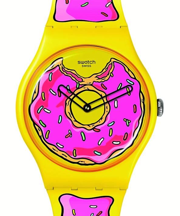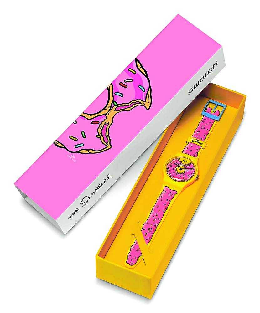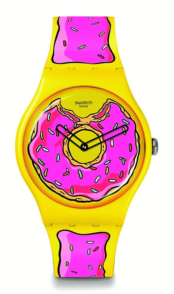 Swatch celebrates “The Simpsons” (and the show’s 35th season) with Seconds of Sweetness, a fun and vibrant timepiece that will bring a smile to your face. The playful homage features the iconic frosted pink donut that Homer Simpson loves on the dial, covered in colorful sprinkles. (And Homer, naturally, has taken a giant bite already.)