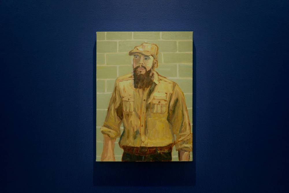 And of course, going full circle, Victoria paints her family. She does a solo portrait of Jason, painting him with his unmistakable beard and newsboy cap, a textured brick wall behind him. In “Mother and Child,” she does a self-portrait holding their young son Miguel. Standing in front of a painting by Jason, a rendition of his other character “Here Lies the Painter,” she says how there are representations of the three of them, in effect creating a complete family portrait.