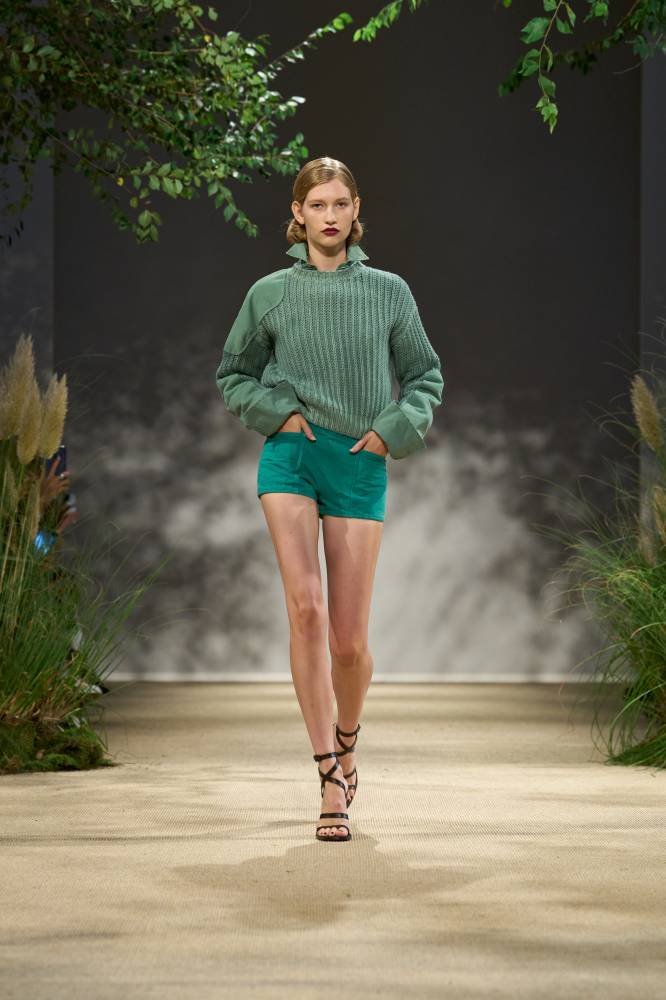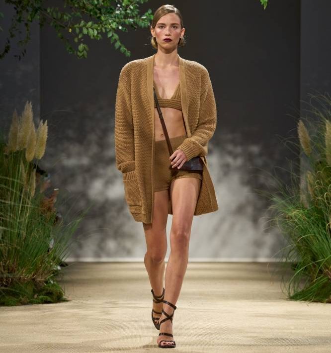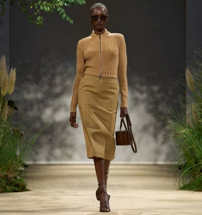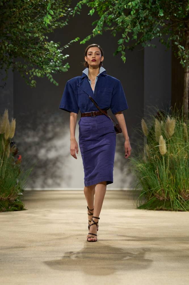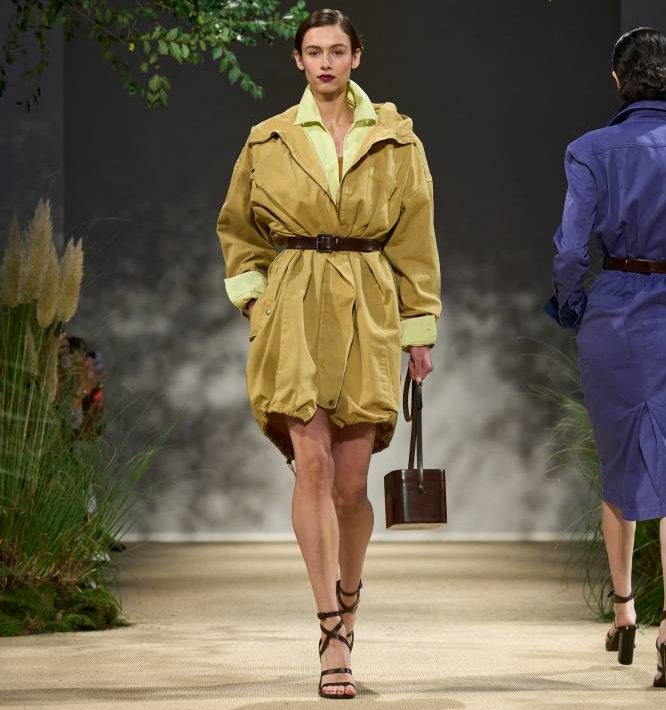 The theme may be pastoral but this is a collection dedicated to the big city girl; her bag is more likely to contain a laptop and lunch box than fresh blooms, and those high-heeled strappy sandals were made for strutting the sidewalk, not turning the earth. But today’s woman signs up for the new wave when she steps out in Max Mara’s land girl look.