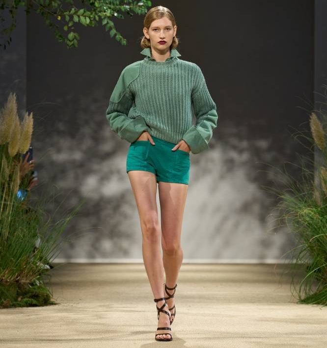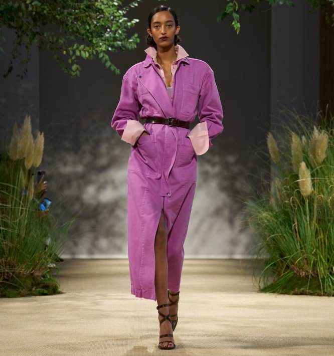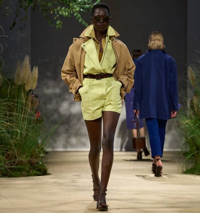 Their jodhpurs, siren suits and other workwear classics are the inspiration for Max Mara’s utility glamour, featuring pockets and pouches big enough for a potting trowel, tough reinforced stitching and sturdy suspenders. They are realized in characterful drills dyed in an astonishing profusion of pretty colors, like the flowers in a midsummer cottage garden.