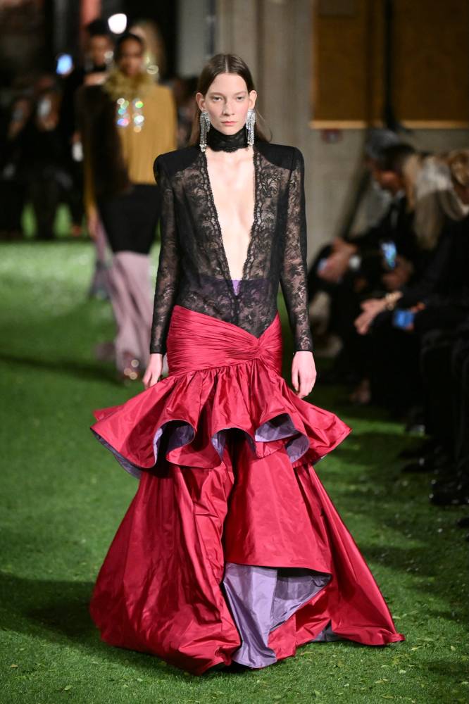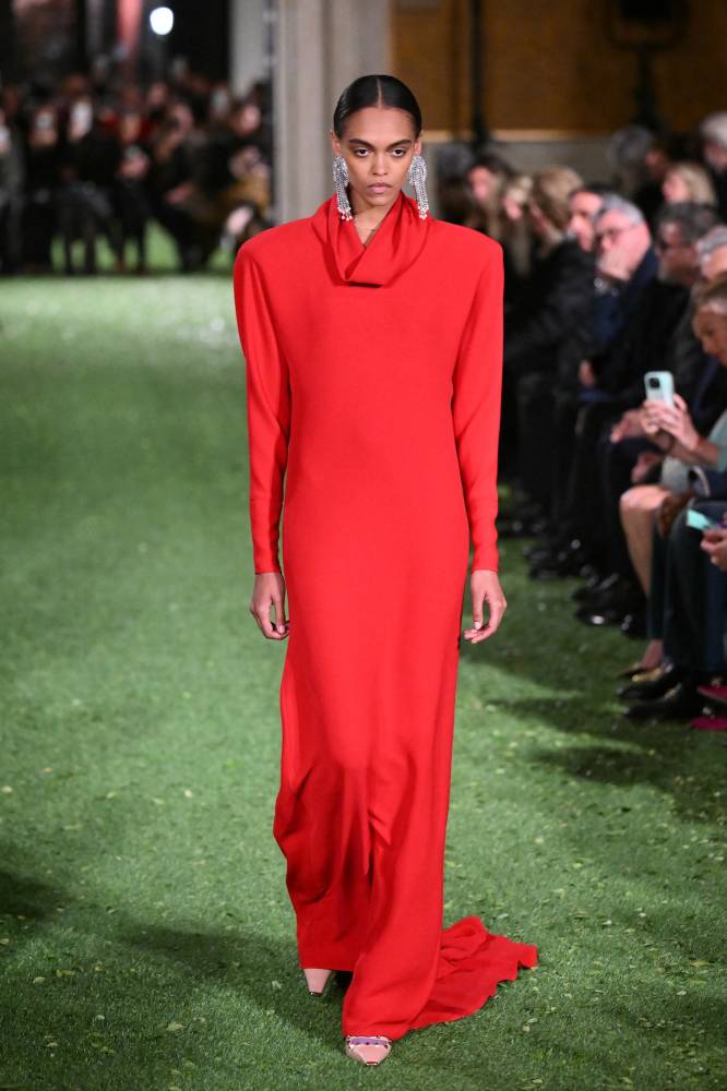 The final dress of Michele’s collection, a longsleeved gown with a deep cut at the back, was a showstopper in the house’s signature red.