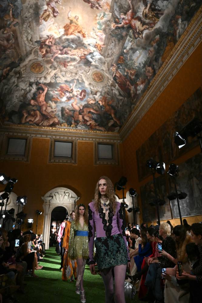 Around 700 people including Hollywood star Gwyneth Paltrow were invited to the show held in the galleries of the Palazzo Barberini, a Baroque palace now home to masterpieces by Caravaggio, Raphael, and many others.