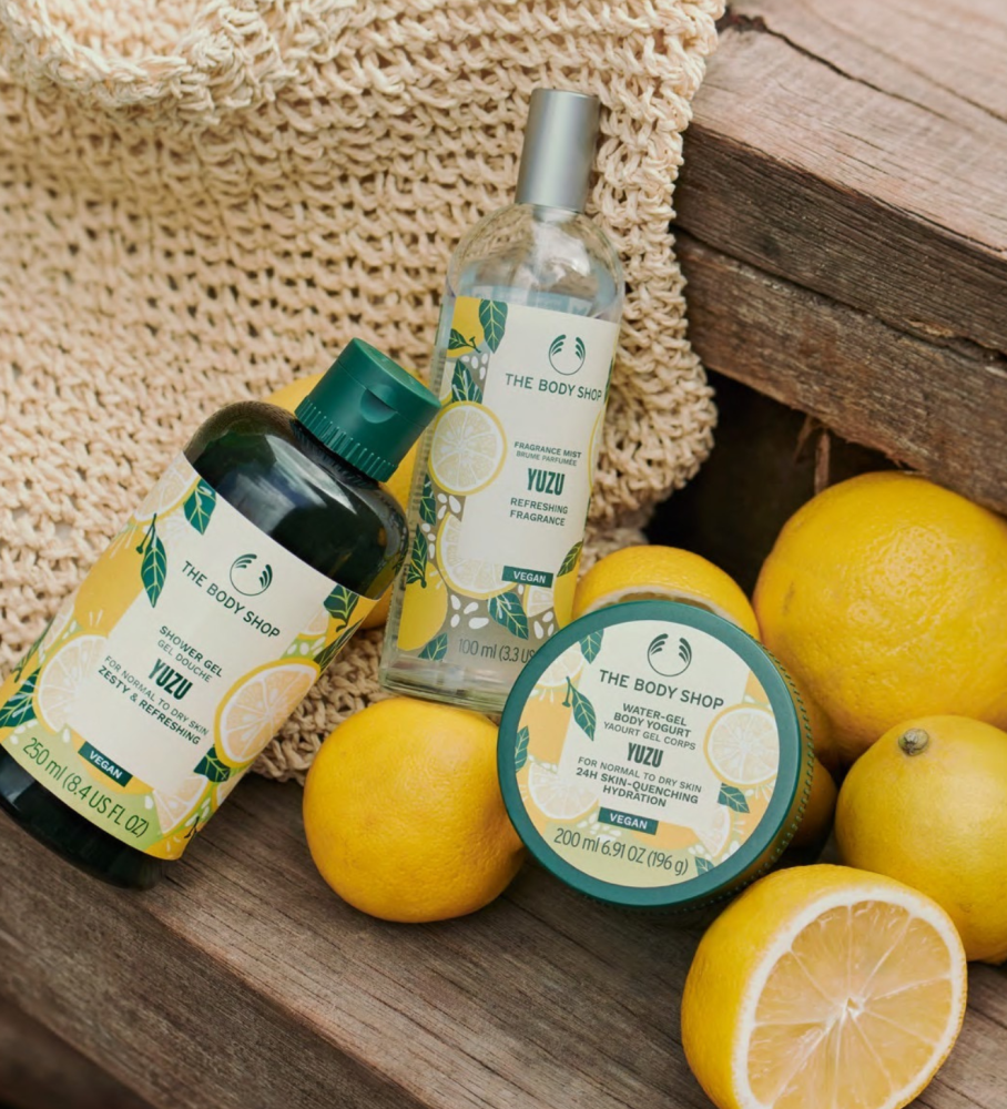 Refresh your body and senses during hot summer days with the Yuzu Shower Gel, enriched with the extract of yuzu peel, cultivated in Japan, as well as calming aloe vera sourced through The Body Shop’s Community Fair Trade program.