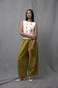 The selections now are more varied and updated, ranging from terno tops in vibrant palettes to wide-leg pants made of traditional woven material with indigenous patterns—contemporary takes on what used to be seen as native or ethnic. There are also handcrafted footwear, bags, and accessories.