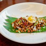 Over brunch, I am served with a green plate lined with banana leaf, filled with finely-diced mushrooms and OmniMeat, a plant-based product that mimics the tastes of meat and seafood. It is crowned with an egg made of tofu for the whites and chickpea flour for the yolk. The red chili and calamansi complete the vegan sisig. Another dish is a slab of breaded eggplant which looks like beef at first glance. It is paired with eggplant caviar on a sauce of coconut milk, chili, turmeric and lemongrass.These are now part of the menu at Joy~Nostalg Hotel and Suites.“I’ve been experimenting at home. Eggplant is my new beef,” says executive chef Gulshan “Gus” Mohamed.